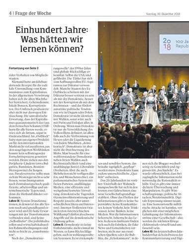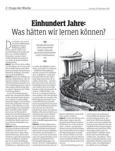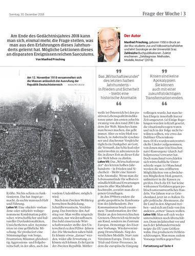 Am Ende des Gedächtnisjahres 2018 kann man sich, einmal mehr, die Frage stellen, was man aus den Erfahrungen dieses Jahrhunderts gelernt hat. Mögliche Lektionen dieses an disparaten Ereignissen reichen Saeculums. Von Manfred Prisching