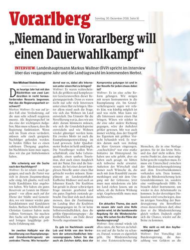Interview. Landeshauptmann Markus Wallner (ÖVP) spricht im Interview über das vergangene Jahr und die Landtagswahl im kommenden Herbst.