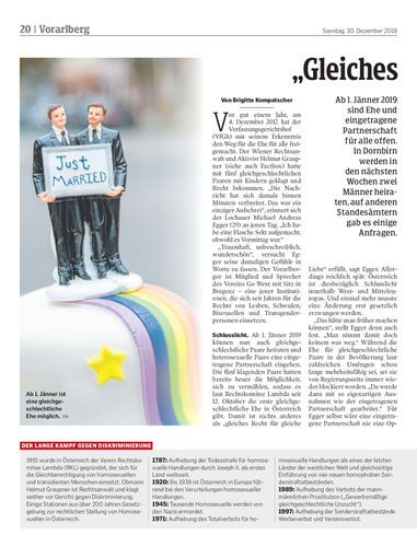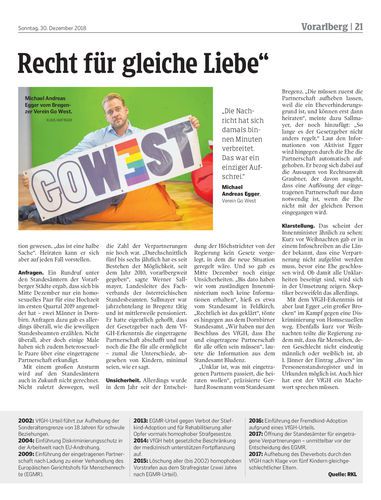 Ab 1. Jänner 2019 sind Ehe und eingetragene Partnerschaft für alle offen. In Dornbirn werden in den nächsten Wochen zwei Männer heiraten, auf anderen Standesämtern gab es einige Anfragen.