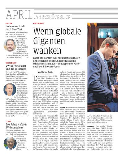 Facebook kämpft 2018 mit Datenskandalen und gegen die Politik. Google fasst eine Milliardenstrafe aus – und Apple den Kater nach der Billionen-Party.