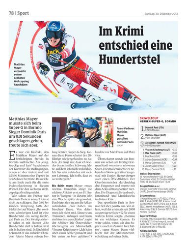 Matthias Mayer musste sich beim Super-G in Bormio Sieger Dominik Paris um 0,01 Sekunden geschlagen geben, freute sich aber.