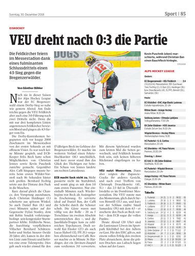 Die Feldkircher feiern im Messestadion dank eines fulminanten Schlussdrittels einen 4:3-Sieg gegen die Bregenzerwälder.