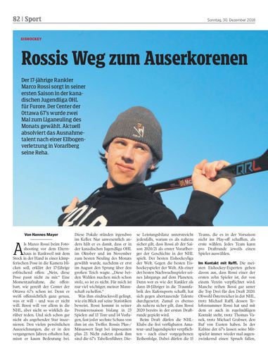 Der 17-jährige Rankler Marco Rossi sorgt in seiner ersten Saison in der kanadischen Jugendliga OHL für Furore. Der Center der Ottawa 67’s wurde zwei Mal zum Liganeuling des Monats gewählt. Aktuell absolviert das Ausnahmetalent nach einer Ellbogenverletzung in Vorarlberg seine Reha.