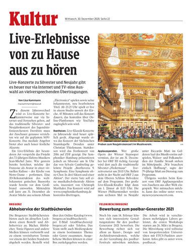 Live-Konzerte zu Silvester und Neujahr gibt es heuer nur via Internet und TV: eine Auswahl an vielversprechenden Übertragungen.