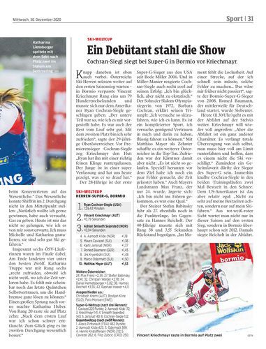 Cochran-Siegl siegt bei Super-G in Bormio vor Kriechmayr.