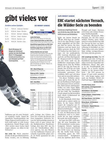 Lustenau empfängt heute um 19.30 Uhr den ECB. Die VEU trifft erneut auf Kitzbühel.