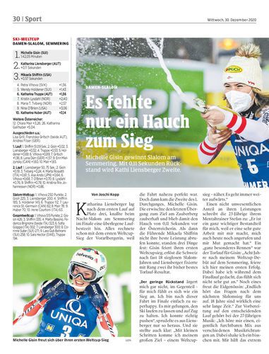 Michelle Gisin gewinnt Slalom am Semmering. Mit 0,11 Sekunden Rückstand wird Kathi Liensberger Zweite.