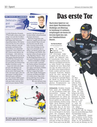 Nach dem Spiel ist vor dem Spiel: Nachdem die Bulldogs am Montag in Salzburg 1:4 verloren, empfangen sie heute im letzten Spiel des Jahres Tabellenführer Bozen.