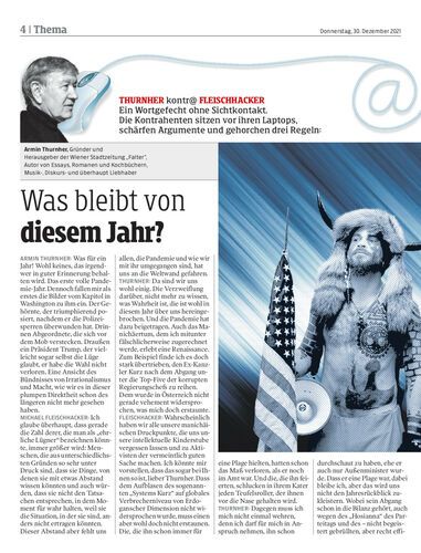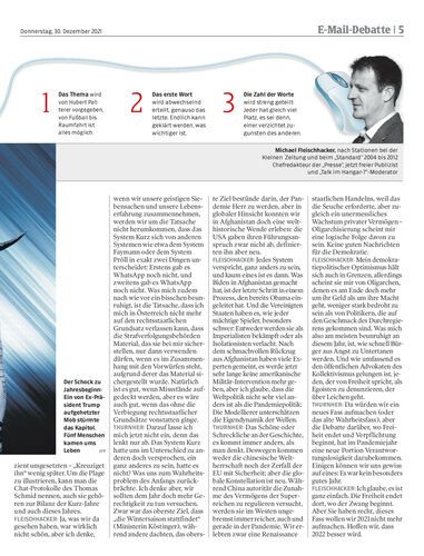 THURNHER kontr@ FLEISCHHACKER Ein Wortgefecht ohne Sichtkontakt. Die Kontrahenten sitzen vor ihren Laptops, schärfen Argumente und gehorchen drei Regeln: