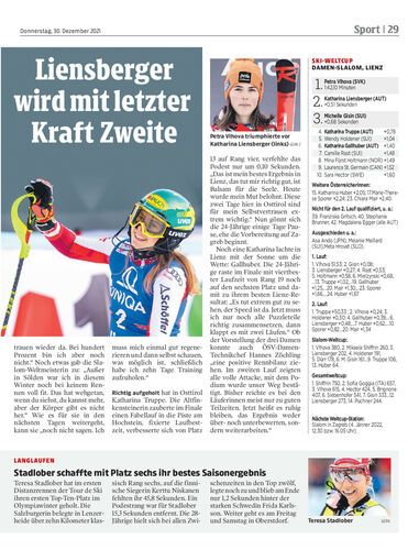 Petra Vlhova gewinnt Slalom in Lienz vor Kathi Liensberger. Die sorgte nach ihrer Corona-Infektion für ersten Podestplatz der Technikdamen. Kathi Truppe wird mit Laufbestzeit Vierte.