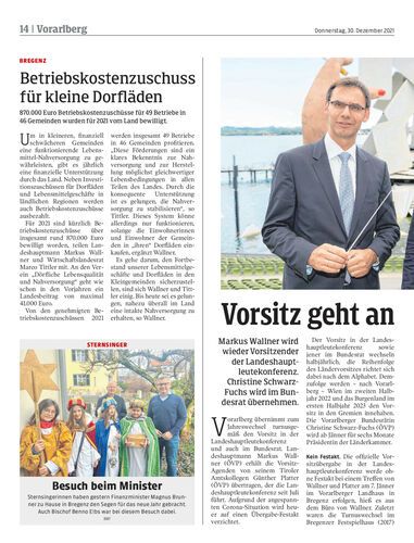 870.000 Euro Betriebskostenzuschüsse für 49 Betriebe in 46 Gemeinden wurden für 2021 vom Land bewilligt.