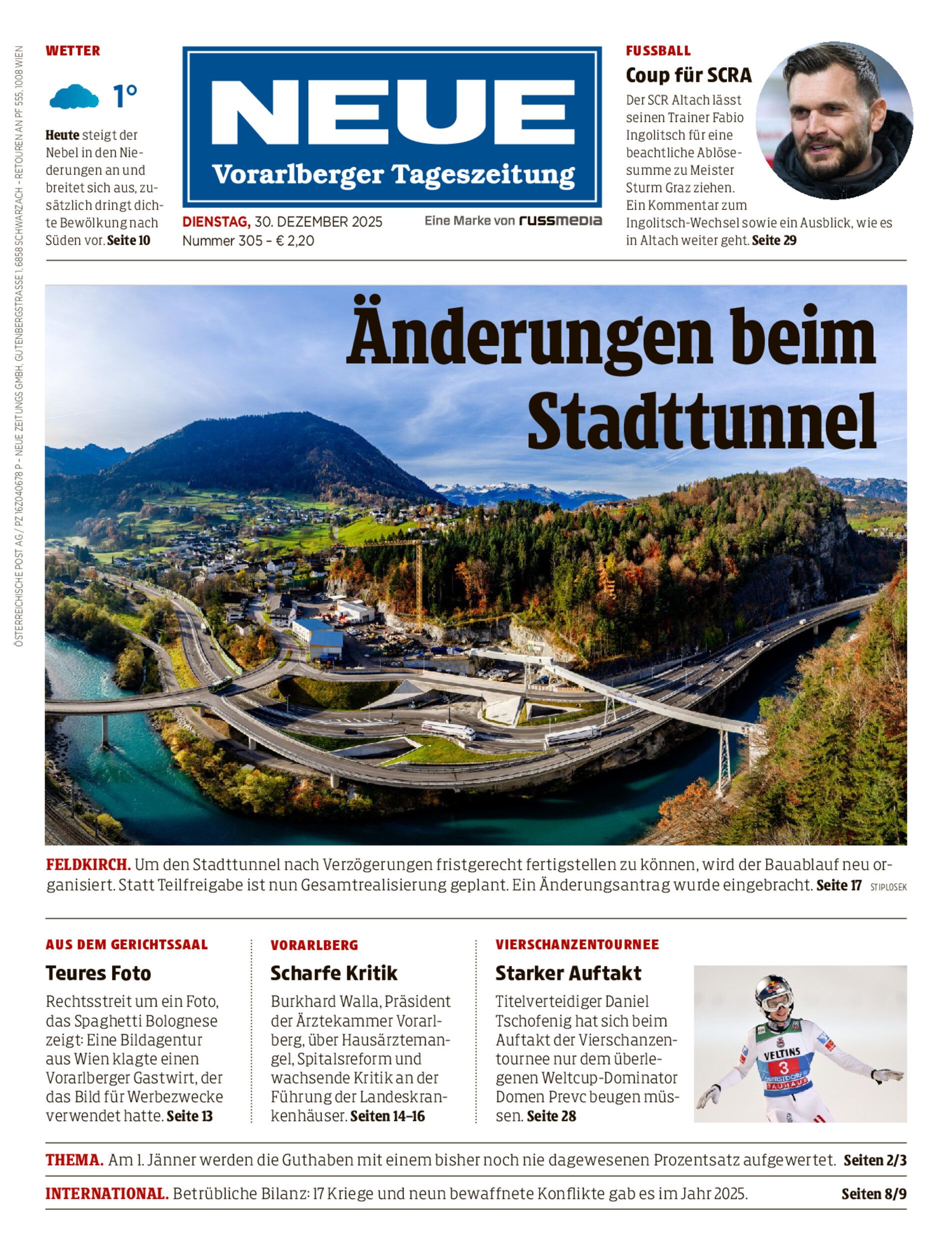 Stadttunnel Feldkirch wird nicht wie geplant in Etappen fertiggestellt. Stattdessen soll das Projekt bis 2030 gesamthaft realisiert werden.