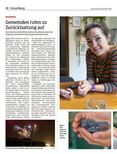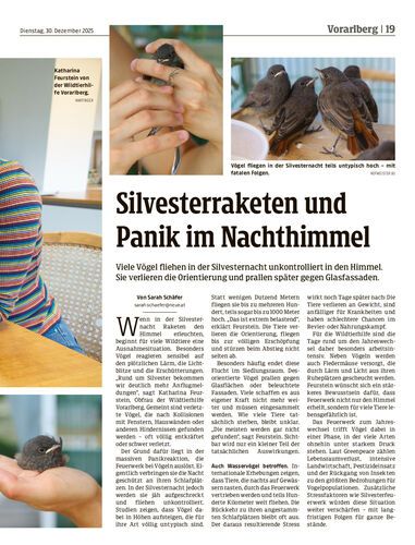 Viele Vögel fliehen in der Silvesternacht unkontrolliert in den Himmel. Sie verlieren die Orientierung und prallen später gegen Glasfassaden.