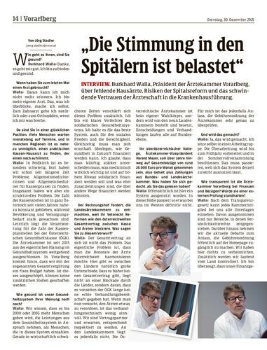 Interview. Burkhard Walla, Präsident der Ärztekammer Vorarlberg, über fehlende Hausärzte, Risiken der Spitalsreform und das schwindende Vertrauen der Ärzteschaft in die Krankenhausführung.