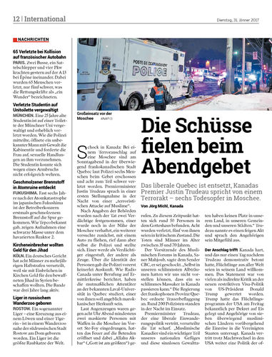 Das liberale Quebec ist entsetzt, Kanadas Premier Justin Trudeau spricht von einem Terrorakt – sechs Todesopfer in Moschee. Von Jörg Michl, Kanada