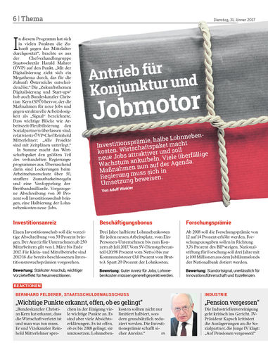 Investitionsprämie, halbe Lohnnebenkosten. Wirtschaftspaket macht neue Jobs attraktiver und soll Wachstum ankurbeln. Viele überfällige Maßnahmen nun auf der Agenda. Regierung muss sich in Umsetzung beweisen. Von Adolf Winkler