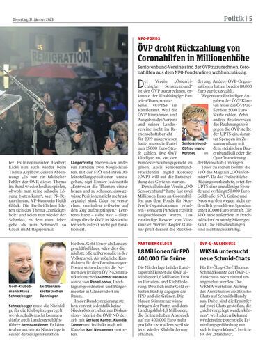 Seniorenbund-Vereine sind der ÖVP zuzurechnen. Coronahilfen aus dem NPO-Fonds wären wohl unzulässig.