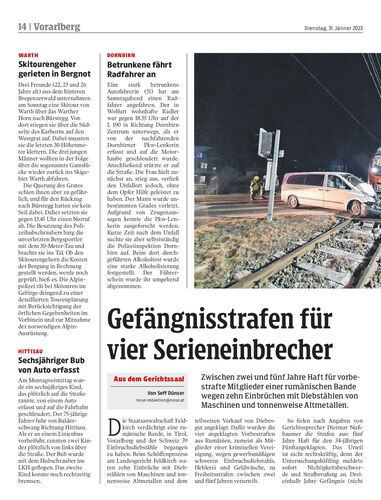 Zwischen zwei und fünf Jahre Haft für vorbestrafte Mitglieder einer rumänischen Bande wegen zehn Einbrüchen mit Diebstählen von Maschinen und tonnenweise Altmetallen.