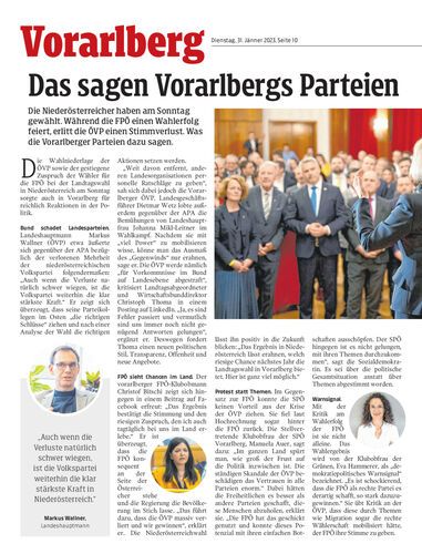 Die Niederösterreicher haben am Sonntag gewählt. Während die FPÖ einen Wahlerfolg feiert, erlitt die ÖVP einen Stimmverlust. Was die Vorarlberger Parteien dazu sagen.