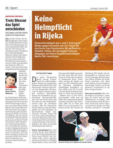 Österreich kämpft am 4. und 5. Februar in Rijeka gegen Kroatien um ein Ticket für das Davis-Cup-Finalturnier. Mit an Bord ist Dominic Thiem, die Gastgeber müssen hingegen auf ihren Kanonenaufschläger Marin Čilić verzichten.