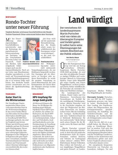 Der verstorbene Altlandeshauptmann Martin Purtscher wird von vielen als überzeugter Europäer und Vorbild gelobt. Er selbst hatte seine Überzeugungen bei seinem Abschied aus der Politik erläutert.