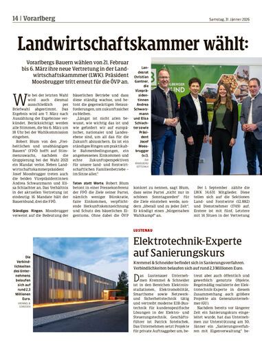 Vorarlbergs Bauern wählen von 21. Februar bis 6. März ihre neue Vertretung in der Landwirtschaftskammmer (LWK). Präsident Moosbrugger tritt erneut für die ÖVP an.