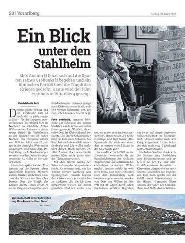 Max Amann (31) hat sich auf die Spuren seines Großonkels begeben und ein filmisches Porträt über die Tragik des Krieges gedreht. Heute wird der Film erstmals in Vorarlberg gezeigt.