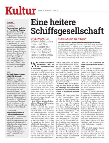 Interview. Die Schauspieler Luzian Hirzel und Thomas Schmidt über das Stück „Fellinis Schiff der Träume“. Premiere ist morgen im Landestheater.