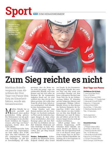 Matthias Brändle verpasste zum Abschluss der Drei Tage von Panne den Sieg im Einzelzeitfahren, wurde am Gesamtzweiter.