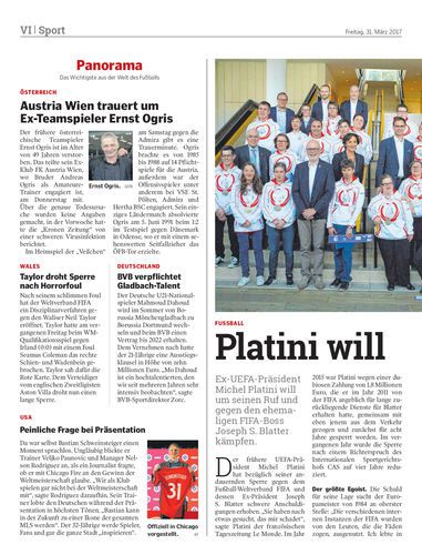Ex-UEFA-Präsident Michel Platini will um seinen Ruf und gegen den ehemaligen FIFA-Boss Joseph S. Blatter kämpfen.