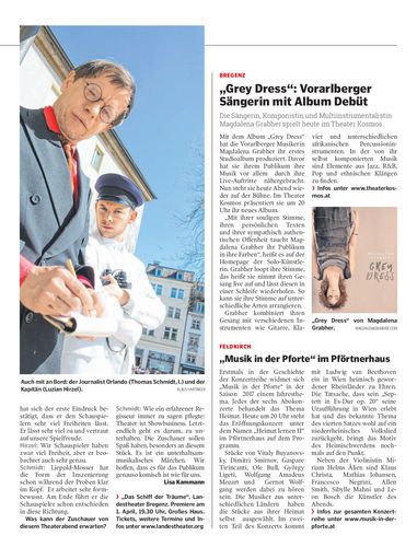 Die Sängerin, Komponistin und Multiinstrumentalistin Magdalena Grabher spielt heute im Theater Kosmos.