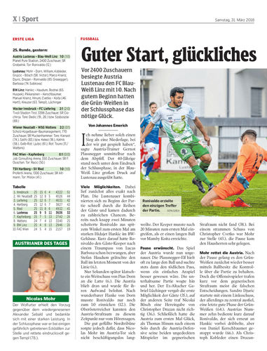 Vor 2400 Zuschauern besiegte Austria Lustenau den FC Blau-Weiß Linz mit 1:0. Nach gutem Beginn hatten die Grün-Weißen in der Schlussphase das nötige Glück.