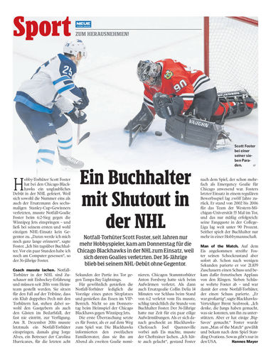 mehr Hobbyspieler, kam am Donnerstag für die Chicago Blackhawks in der NHL zum Einsatz, weil sich deren Goalies verletzten. Der 36-Jährige