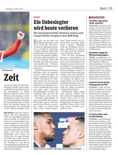 Die Schwergewichtler Anthony Joshua und Joseph Parker steigen in den WM-Ring.