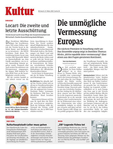 Die nächste Premiere in Vorarlberg steht an: Das Ensemble unpop zeigt in Dornbirn Thomas Köcks „dritte republik (eine vermessung)“ über einen aus den Fugen geratenen Kontinent.