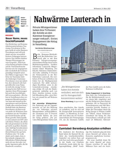 Private Miteigentümer haben ihre 75 Prozent der Anteile an den Kärntner Energieversorger verkauft. Erstes Engagement der Kelag in Vorarlberg.