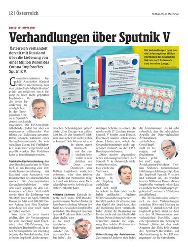 Österreich verhandelt derzeit mit Russland über die Lieferung von einer Million Dosen des Corona-Impfstoffes Sputnik V.