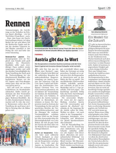 Die Kooperation zwischen Austria Lustenau und der Core Sport Capital mit Investor Ahmet Schaefer wird vertieft.