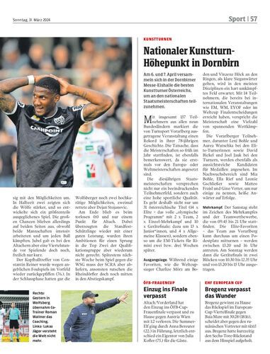 Nationaler Kunstturn- Höhepunkt in Dornbirn