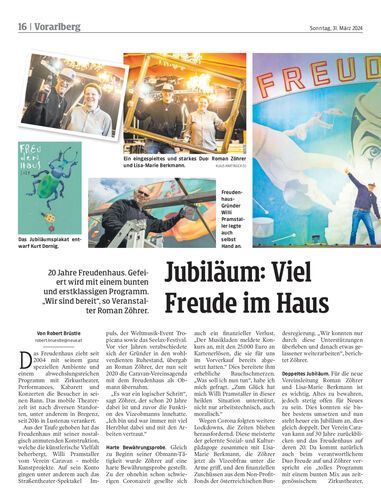 20 Jahre Freudenhaus. Gefeiert wird mit einem bunten und erstklassigen Programm. „Wir sind bereit“, so Veranstalter Roman Zöhrer.