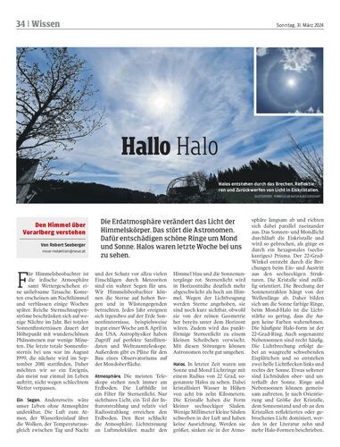 Die Erdatmosphäre verändert das Licht der Himmelskörper. Das stört die Astronomen. Dafür entschädigen schöne Ringe um Mond und Sonne. Halos waren letzte Woche bei uns zu sehen.