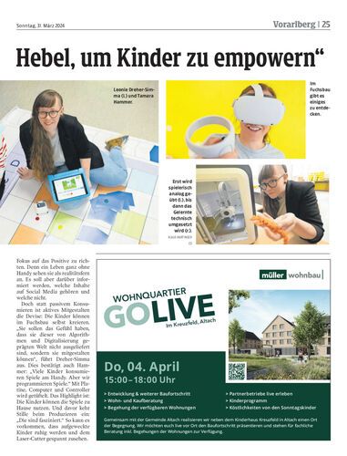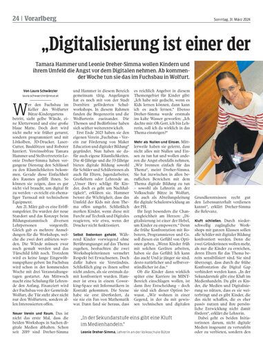 Tamara Hammer und Leonie Dreher-Simma wollen Kindern und ihrem Umfeld die Angst vor dem Digitalen nehmen. Ab kommender Woche tun sie das im Fuchsbau in Wolfurt.