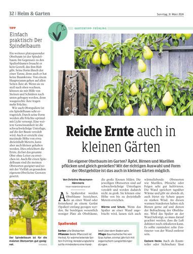 Ein eigener Obstbaum im Garten? Äpfel, Birnen und Marillen pflücken und gleich genießen? Mit der richtigen Auswahl und Form der Obstgehölze ist das auch in kleinen Gärten möglich.