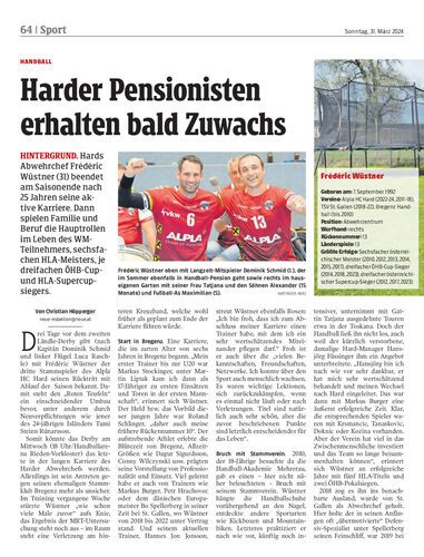 Hintergrund. Hards Abwehrchef Frédéric Wüstner (31) beendet am Saisonende nach 25 Jahren seine aktive Karriere. Dann spielen Familie und Beruf die Hauptrollen im Leben des WM-Teilnehmers, sechsfachen HLA-Meisters, je dreifachen ÖHB-Cup- und HLA-Supercupsiegers.