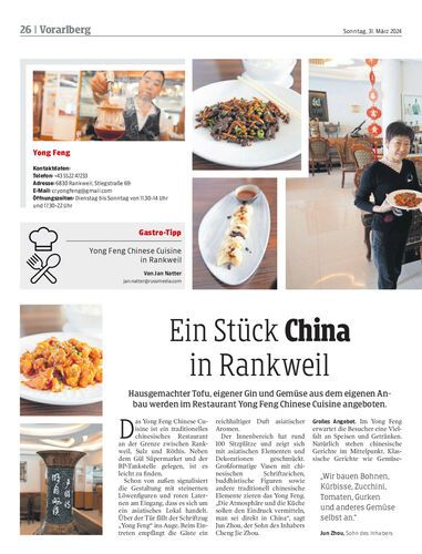 Hausgemachter Tofu, eigener Gin und Gemüse aus dem eigenen Anbau werden im Restaurant Yong Feng Chinese Cuisine angeboten.