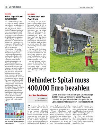 Davon entfallen dem bisherigen Urteil zufolge 350.000 Euro auf Schmerzengeld. Wegen gerichtlich festgestellter Behandlungsfehler im Spital ist der Bub seit Geburt schwerbehindert.