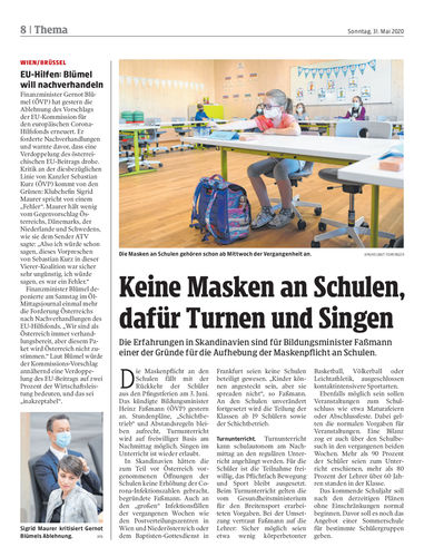 Die Erfahrungen in Skandinavien sind für Bildungsminister Faßmann einer der Gründe für die Aufhebung der Maskenpflicht an Schulen.