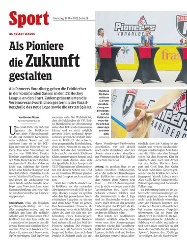 Als Pioneers Vorarlberg gehen die Feldkircher in der kommenden Saison in der ICE Hockey League an den Start. Zudem präsentierten die Vereinsverantwortlichen gestern in der Vorarlberghalle das neue Logo sowie die ersten Spieler.
