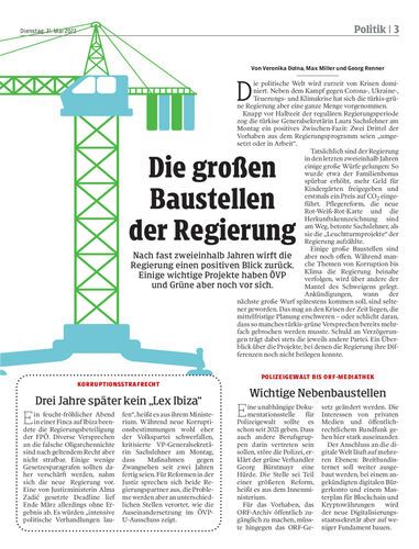 Nach fast zweieinhalb Jahren wirft die Regierung einen positiven Blick zurück. Einige wichtige Projekte haben ÖVP und Grüne aber noch vor sich.
