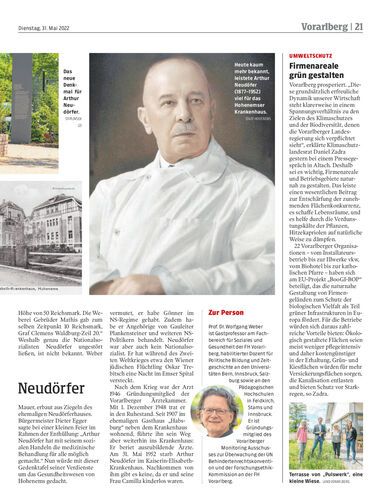 Vor Kurzem wurde Denkmal für Arthur Neudörfer enthüllt. Es wurde aus Ziegeln seines ehemaligen Wohnhauses geschaffen.